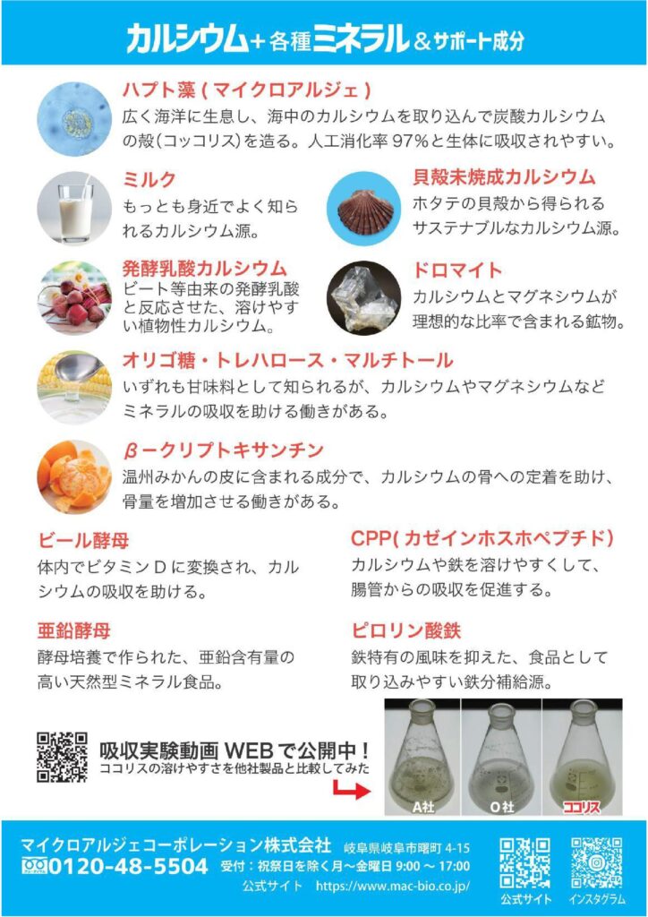 マイクロアルジェ ココリス サプリメントココリス100包 2025.12.012025.12.03 ここに見出しテキストを追加 カマイクロアルジェ ココリス 藻 サプリ 100袋 カルシウム 吸収効率に配慮した設計 カルシウム マグネシウム 鉄 亜鉛 ビタミンD ハプト藻12,960円